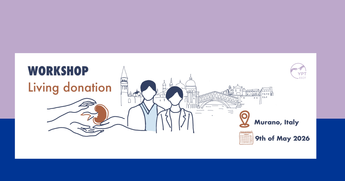 We are pleased to invite applications for the Young Professionals in Transplantation (YPT) Workshop, taking place on Saturday 9 May 2026 in Murano, Italy, followed by the 12th International Living Donor Abdominal Organ Transplant Conference on 10 – 11 May 2026.